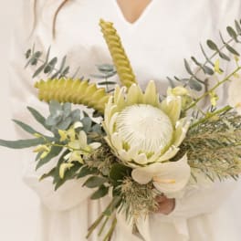 Price: $385.00 Heavenly wedding bouquet tones of white yellow silver eucalyptus greens Product Tags: Next-day Delivery